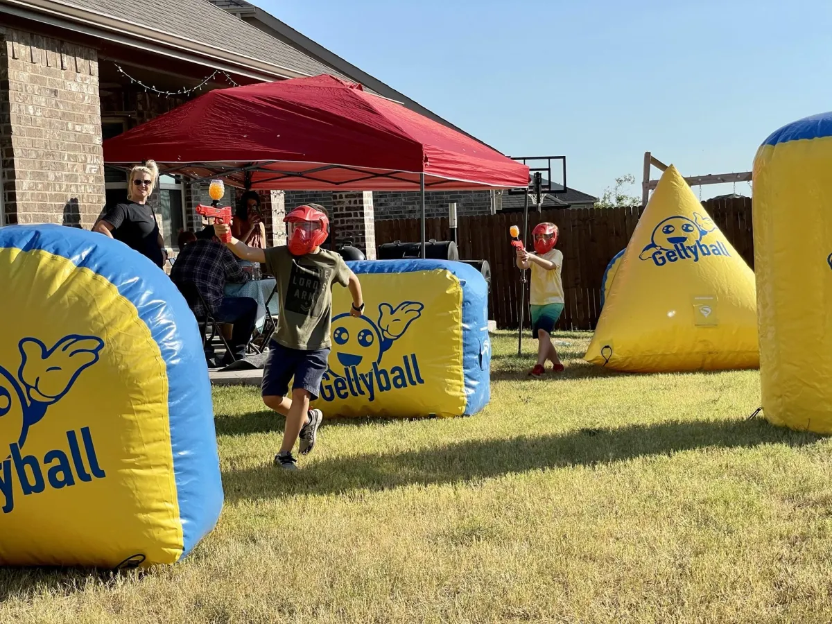 Gellyball is an ultra low impact sport – suitable for kids age five and up. It uses Gellyball blasters – an easy-to-use gun that doesn’t use much pressure to shoot Gellyballs. Unlike Nerf – where you have to constantly reload with ammo off the floor, a GellyBall blaster holds 700 shots without reloading!!! Lots more fun!!!