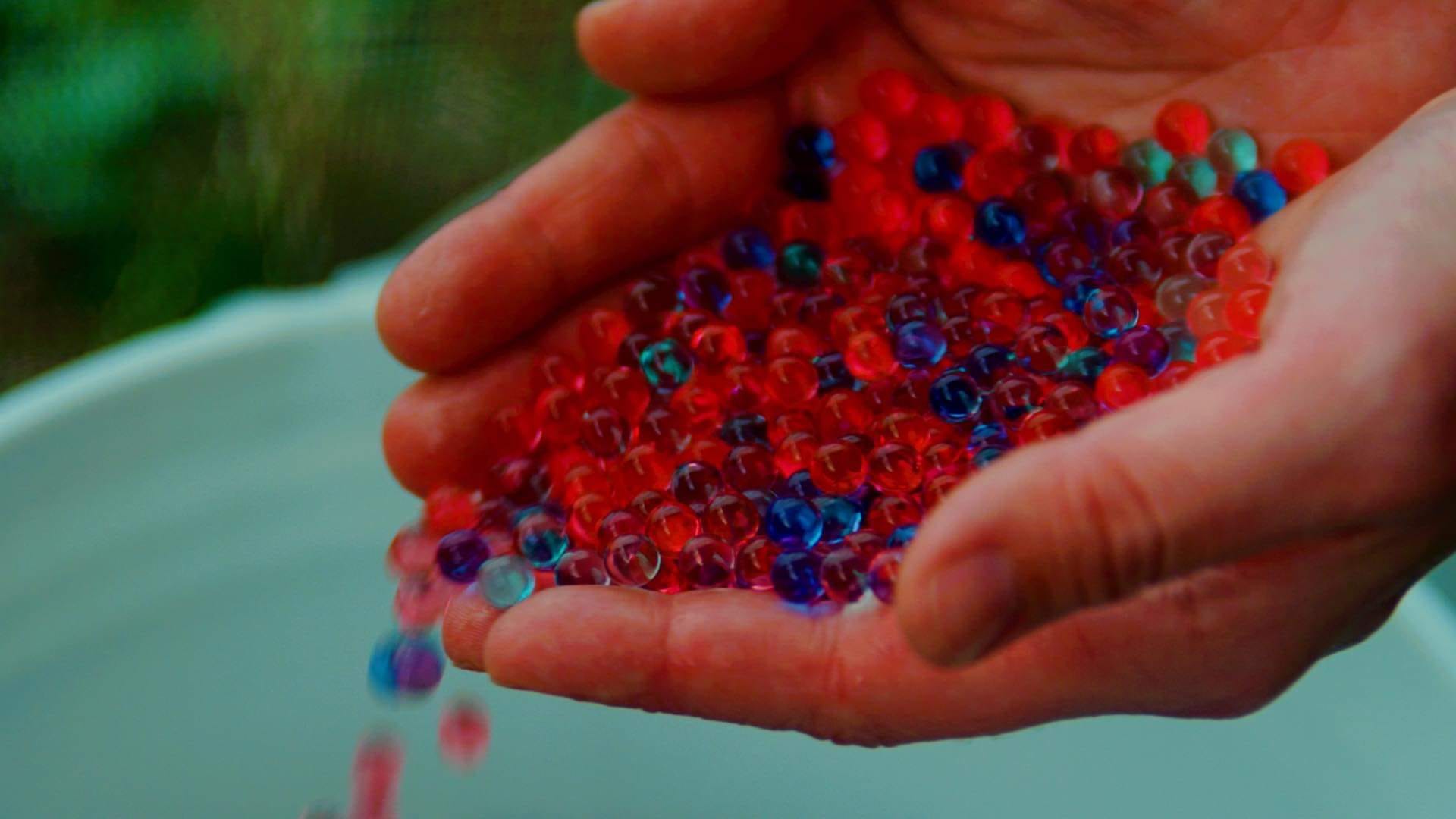 Gellyballs are similar to Orbeez. Gellyballs are teeny tiny absorbent polymer beads that expand into small beads when soaked in water. They are biodegradable and nontoxic. They will not hurt your pets, plants or grass. Unlike paintballs that explode upon impact, Gellyballs simply bounce off or disintegrate – then they dehydrate! No stain, no mess!